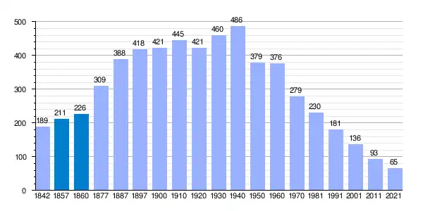| Gráfica de evolución demográfica de Chagarcía Medianero[6] entre 1842 y 2021 |