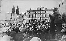 ![]() Rumkowski probando la sopa elaborada por el Judenrat judío para la población del gueto | ||