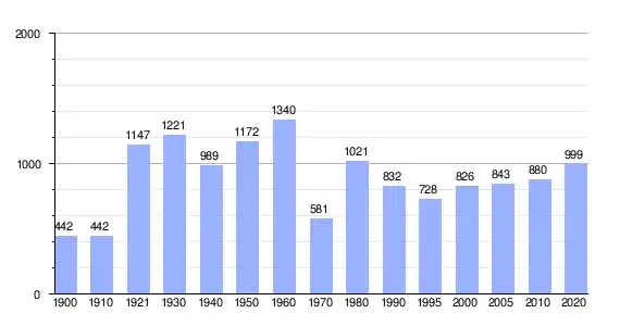 En 2020 registró una población de 999 personas, lo que corresponde al 5.34 % de la población municipal.[1][8] De los cuales 508 son hombres y 491 son mujeres.[1][8]