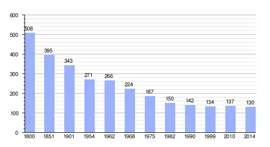 Los datos demográficos contemplados en este gráfico de la comuna de Chalonnes-sous-le-Lude[4] se han cogido de 1800 a 1999 de la página francesa EHESS/Cassini, y los demás datos de la página del INSEE.[5]