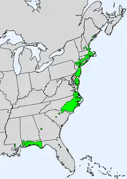 Chamaecyparis thyoides, el falso ciprés blanco,[2] es una especie de Chamaecyparis nativa de la costa del Océano Atlántico de América del Norte desde Maine al sur de Georgia (Estados Unidos), con una población aislada en el Golfo de México, y la costa de Florida sobre el Misisipi. Crece en lugares húmedos, en la planicies costeras a altitudes desde el nivel del mar hasta los 50 m, y más raramente en las estribaciones de los Montes Apalaches hasta 460 m de altitud.[3][4] El nombre también es a veces erróneamente citado como "Cedro Blanco del Atlántico", nombre que es rechazado por el Comité Conjunto de nomenclatura Hortícolas, ya que es un ciprés, no un cedro.[5]