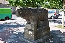 Escudo de forma española. En campo de azur, un toro o verraco de plata terrazado de peñas de oro. Al timbre, corona real de España.Boletín Oficial de Castilla y León nº 36 de 20 de febrero de 2002[2]