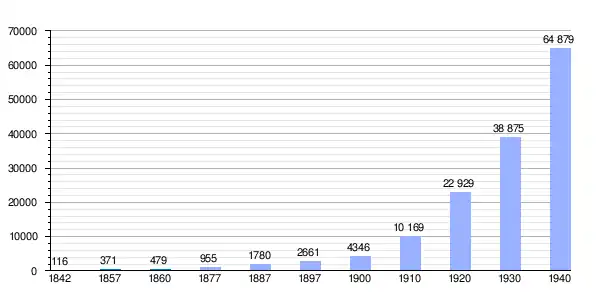 | Gráfica de evolución demográfica de Chamartín de la Rosa[6] entre 1842 y 1940 |