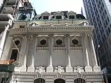 El exterior del Chamber of Commerce Building fue designado por la Comisión de Preservación de Monumentos Históricos de la Ciudad de Nueva York (LPC) como un monumento oficial de la ciudad el 18 de enero de 1966.[10] Fue uno de los primeros hitos en ser designado por el LPC en Manhattan.[67] El edificio fue incluido en el Registro Nacional de Lugares Históricos en 1973[68] y se volvió a agregar al NRHP como Monumento Histórico Nacional en 1977.[69][70] Tras la reubicación de la Cámara en 1979, el LPC también consideró el Gran Salón como un hito interior. La LPC finalmente decidió no hacerlo porque las reglas de la agencia exigían que los puntos de referencia interiores debían ser espacios públicos, y la Cámara había afirmado que el interior era un espacio privado.[5] En 2007, el edificio fue designado como propiedad contribuyente al Distrito Histórico de Wall Street,[71] un distrito NRHP.[72]