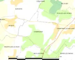 Champagney es una población y comuna francesa, en la región de Franco Condado, departamento de Doubs, en el distrito de Besançon y cantón de Audeux.