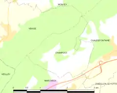 Champoux es una población y comuna francesa, en la región de Borgoña-Franco Condado, departamento de Doubs, en el distrito de Besançon y cantón de Marchaux.