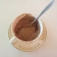 Taza de chapo preparada con chocolate, queso mozzarella y máchica