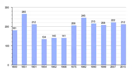 | Gráfica de evolución demográfica de Chaudefontaine entre 1800 y 2015 |