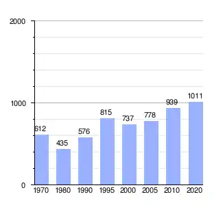 | Gráfica de evolución demográfica de Chauténco entre 1970 y 2020 |