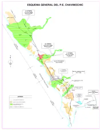 Sin embargo, el Proyecto Especial Chavimochi entró en reestructuración en 2001 debido a una crisis hídrica que afecto a parte de la zona agrícola.[1] Actualmente, este proyecto es un éxito consolidado, posicionando a Perú como el principal exportador mundial de ciertos productos hortícolas.