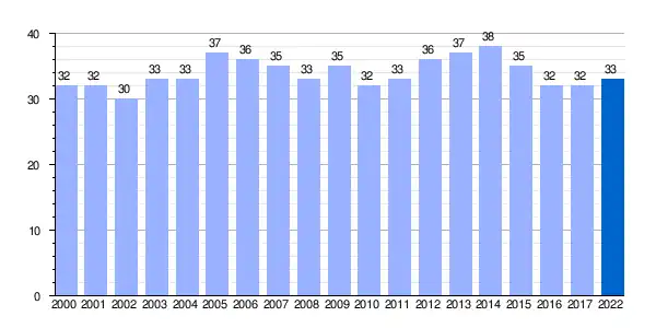 | Gráfica de evolución demográfica de Chinchetru[4] entre 2000 y 2022 |