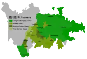 Los dialectos sichuaneses también se hablan en las provincias vecinas, como Hubei, Guizhou, Yunnan, Hunan y Shaanxi. Además, debido a que el sichuanés es la lengua franca en Sichuan, Chongqing y parte del Tíbet, también es utilizado como segunda lengua por varias minorías étnicas como tibetanos, yi, qiang.[1][2][3]