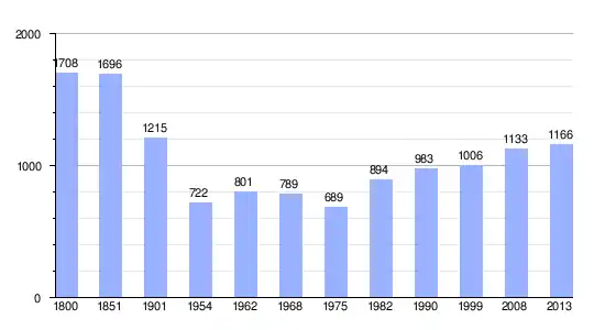 Los datos demográficos contemplados en este gráfico de la comuna de Chirac[4] se han cogido de 1800 a 1999 de la página francesa EHESS/Cassini, y los demás datos de la página del INSEE.[5]
