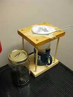 El chorreador consiste en un soporte de madera que sostiene una bolsa elongada de algodón (bolsa de café) en forma similar a un bolsillo. La boca de la bolsita se mantiene abierta por medio de un alambre circular unido a una agarradera y asentada en un marco circular de madera. El soporte es usado para mantener una taza o cafetera en su base y la bolsa está suspendida arriba del soporte del chorreador, colgando arriba del recipiente.