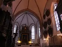 - Púlpito con figuras de los apóstoles (1686) y retablo (1696) de la catedral de Santa María de Tallin[6] 59°26′13.53″N 24°44′21.21″E