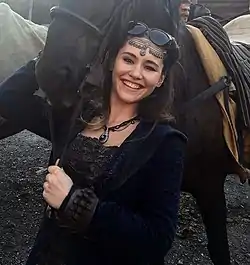 ![]() Christina Chong en el set de rodaje de Of Kings and Prophets (2016) | ||