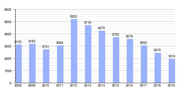 | Gráfica de evolución demográfica de Churriana de la Vega[4] entre 1842 y 2021 |
