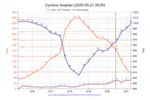 El primer ciclón tropical de la temporada de ciclones en el Índico Norte de 2020. Amphan es la primera tormenta súper ciclónica en la Bahía de Bengala desde el ciclón en Odisha de 1999.[5][6] Se espera que la tormenta toque tierra entre Digha (Bengala Occidental, India) y las Islas Hatia (Bangladés) el miércoles 20 de mayo de 2020. El ciclón Amphan es el segundo ciclón tropical más intenso de todo el 2020.[7]
