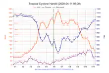 | Presión mínima | 924 mbar (hPa; 27.29 inHg) | |