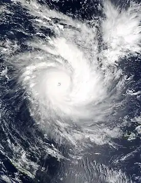 ![]() El ciclón tropical severo Zoe cerca de intensidad máxima el 27 de diciembre de 2002 | ||