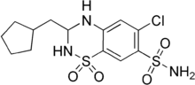 | 6-cloro-3-(ciclopentilmetil)-1,1-dioxo-3,4-dihidro-2H-benzo[e][1,2,4]tiadiazina-7-sulfonamida | ||