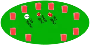 Normalmente, la ciega grande (big blind) es equivalente a la apuesta mínima, y es el doble de la ciega pequeña (small blind). La ciega pequeña es puesta por el jugador a la izquierda del repartidor, y la ciega grande la pone el jugador dos lugares a la izquierda del repartidor. Después de que las cartas se hayan repartido, el jugador a la izquierda de la ciega grande es el primero en actuar durante la primera ronda a lo que se le denomina under the gun.