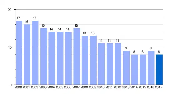 | Gráfica de evolución demográfica de Ciella entre 2000 y 2017 |