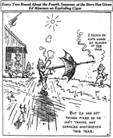 - Describiendo el cómic en Popular Science Monthly en un artículo de 1928, Fox dijo: «Siempre hay tontos en el mundo que piensan que es gracioso distribuir cigarros explosivos, así que dibujé una imagen de un pueblerino disfrutando de tal regalo en completa seguridad. Este dispositivo incluía un tubo de bambú extendiéndose a través de una sombrilla paralela al mango tal que un cigarro insertado al final de la contera podría ser fumado de forma segura por detrás de la protección de la sombrilla».[2]