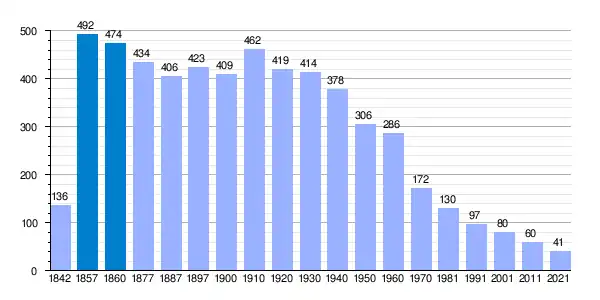 | Gráfica de evolución demográfica de Cilleruelo de Arriba[2] entre 1842 y 2021 |