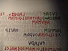 | Escritura | Alfabeto etrusco | |