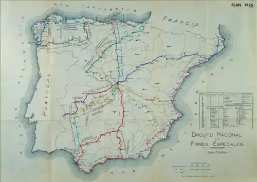 El Circuito Nacional de Firmes Especiales tuvo su continuación en el Gobierno de la Segunda República, por entonces se realizaron unos 7.000 kilómetros de carreteras. Las iniciativas durante este periodo se vieron interrumpidas por la Guerra Civil.