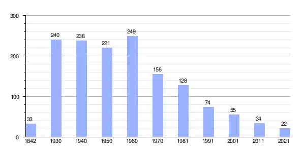| Gráfica de evolución demográfica de Ciruelos del Pinar[3] entre 1842 y 2021 |