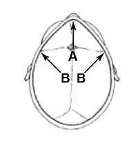 Los huesos del cráneo humano están unidos entre sí mediante suturas craneales (figura 1). El fontanel anterior es donde la sutura metópica, la sagital y la coronal se unen. Normalmente las suturas se fusionan gradualmente en los primeros años después del nacimiento. En los bebés, donde una o más de las suturas se unen demasiado pronto el crecimiento del cráneo está restringido, lo que resulta en mecanismos de compensación que causan los patrones de crecimiento irregulares. El crecimiento en el cráneo es perpendicular a las suturas. Cuando una sutura se fusiona demasiado temprano, el crecimiento perpendicular a la sutura está restringido, y el crecimiento del hueso cerca de las otras suturas será estimulado, causando una forma anormal de la cabeza. El cerebro en expansión es el estímulo principal para el rápido crecimiento del cráneo en los primeros años de la vida. El potencial de crecimiento inhibido del cráneo puede restringir el volumen, necesario para el cerebro. En los casos en los que la compensación no proporciona eficazmente el suficiente espacio para el cerebro en desarrollo, resulta en una craneosinostosis la cual es el aumento de presión itracranea.[1]