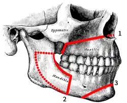 ![]() Osteotomies of the jaws: 1. Lefort I 2. Sagittal split 3. Genioplasty | ||