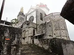 Inspirado en la Basílica de Lourdes, Francia, El santuario de Nuestra Señora de Guadalupe tiene hiladas de jarritos de barro, lo que la diferencia de la anterior, por lo que es llamada “Iglesia de los Jarritos”.