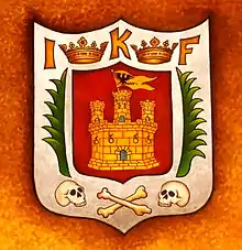 Un escudo, el campo colorado y dentro del un castillo de oro con puertas y ventanas azules, y encima del dicho castillo una bandera con una águila negra rampante en campo de oro y por la orla en cada uno de los dos lados de ella un ramo de palma verde y en los altos de dicha orla tres letras que son: una I. una K. y una F. que son las primeras letras de nuestros nombres y del príncipe Don Felipe nuestro muy caro y muy amado nieto e hijo, y entre estas tres letras dos coronas de oro y de la parte de abajo dos calaveras de hombres muertos y entre ellas dos huesos de hombre muerto atravesados a manera de aspa, que vuelvan a color amarillo: la cual dicha orla tenga el campo de plata según lo que aquí van figuradas y pintadas las cuales dichas armas damos a la dicha ciudad por sus armas y divisa señalada, para que las pueda traer y poner y traiga y ponga en sus pendones, sellos y escudos y banderas, y en las otras partes que quisieren y por bien tuvieren según y cómo y de la forma y a la manera que las ponen, y traen las otras ciudades de nuestros reinos a quien tenemos dadas armas y divisa y por esta nuestra carta, mandamos al ilustrísimo príncipe, nuestro muy caro y amado nieto e hijo ya los infantes nuestros muy caros hijos y hermanos, y a los prelados, Duques, Marqueses, Condes, Ricos hombres, Maestros de las Ordenes, Priores, Comendadores, y Subcomendadores, Alcaides de los Castillos y Casa fuertes, y Llanas, e a los de nuestro consejo Alcaldes y Alguaciles de la nuestra casa y Corte y Chancillerias. Y a todos los Consejos Corregidores, Asistentes, Gobernadores, Alcaldes, Alguaciles, Marinos Prebostes…”