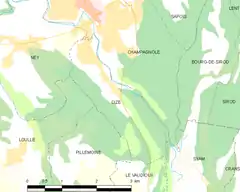 - Situación de Cize (Jura) en un mapa de Francia y de comunas limítrofes (enlace roto disponible en Internet Archive; véase el historial, la primera versión y la última). (en francés)