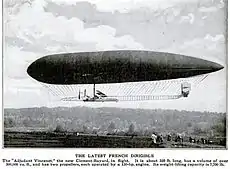- Adj Vincenot Modificado, 87.3 metros de largo, 13.5 metros de ancho, 9800 m³, propulsado por 2 motores Clément Bayard de 120 cv. Velocidad máxima 53 km/h. Primer vuelo el 13 de agosto de 1913.[21]