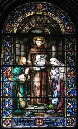 Vidriera en la que san Francisco de Asís entrega la regla de la Tercera orden franciscana