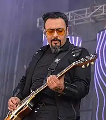 ![]() Claudio Valenzuela en la Cumbre del Rock Chileno 2018. | ||