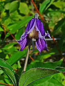 Es un subarbusto o hierba erecta, perennifolia, que alcanza un tamaño de 1 - 1,5 m de altura. Las ramas superficialmente con 6 - 10 ranuras, son pubérulas, glabrescentes, a menudo simples. Las hojas son simples, sésiles, con el limbo anchamente ovado, de 4 - 14 x 2,5 - 11 cm, papiráceas, redondeadas a ampliamente cuneadas, el margen entero y abaxialmente pubescentes el ápice agudo; las venas basales abaxialmente prominente. Las flores son solitarias, terminales, de 4 cm de diámetro.. Los sépalos en número de 4, son de color púrpura, azul o blanco, de 3 a 4,5 × 0,7 - 1,2 cm. Los frutos son aquenios estrechamente obovados, de 6 - 10 × 4 a 5 mm, pubérulos. Fl. junio-julio, fr. agosto.[1]