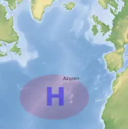 El anticiclón de las Azores sufre desplazamientos hacia el norte o el sur siguiendo el movimiento aparente de las estaciones. Desde los 30 a los 3° N. En el invierno se encuentra más al sur, mientras que en verano se encuentra en los 40°