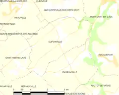 Cliponville es una población y comuna francesa, en la región de Alta Normandía, departamento de Sena Marítimo, en el distrito de Le Havre y cantón de Fauville-en-Caux.