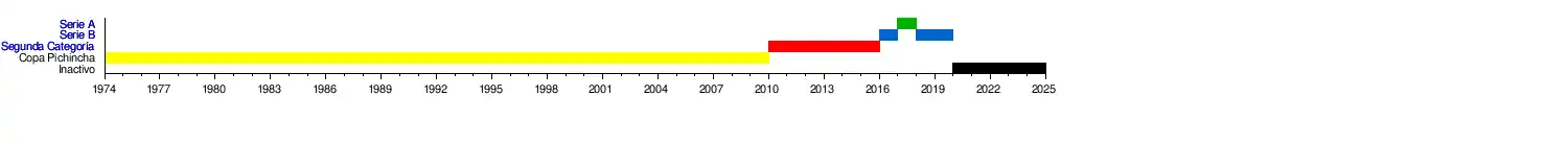 Su disciplina principal es el fútbol en el que debutó en la Segunda Categoría de Pichincha en 2010. Aunque en la actualidad debido a problemas institucionales no ha participado en este campeonato.