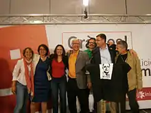- Iniciativa del Poble Valencià (IdPV). Su origen es la corriente interna de Esquerra Unida del País Valencià Esquerra i País, que representaba en torno al 30 % de EUPV.[25] Se constituyó en partido político el 20 de octubre de 2007, en medio de la crisis en EUPV que enfrentaba al sector mayoritario, nucleado en torno al Partit Comunista del País Valencià y la coordinadora general Glòria Marcos, y los críticos más cercanos al valencianismo (Esquerra i País). Este es un partido definido como ecosocialista y valencianista.[26]