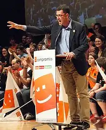 La lista al Congreso de los Diputados por Valencia la lideró el nacionalista Joan Baldoví del Bloc Nacionalista Valencià (BLOC).[93] Por Castellón, el candidato fue el también valencianista Roger Mira, hijo del intelectual Joan Francesc Mira.[94] Por Alicante, la cabeza de cartel fue Aitana Mas, de Iniciativa del Poble Valencià.[95] En sus primeras declaraciones públicas tras ser elegido candidato, Joan Baldoví afirmó ver un "futuro esperanzador" ante "la posibilidad de tener por primera vez desde la Segunda República un diputado valencianista en las Cortes".[96]