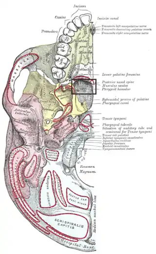 ![]() Base del cráneo. Coana derecha resaltada con un recuadro. | ||