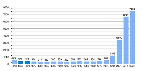 | Gráfica de evolución demográfica de Cobeña[4] entre 1842 y 2021 |