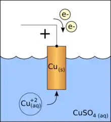 El cobre (del latín cuprum, y este del griego kypros, Chipre),[5] cuyo símbolo es Cu, es el elemento químico de número atómico 29. Se trata de un metal de transición de color cobrizo, es decir, rojizo anaranjado, de brillo metálico que, junto con la plata, el oro y el roentgenio, forma parte de la llamada familia del cobre. Es uno de los mejores conductores de electricidad (el segundo después de la plata). Gracias a su alta conductividad eléctrica, su ductilidad y su maleabilidad, es el material más utilizado para fabricar cables eléctricos y otros elementos eléctricos y componentes electrónicos.