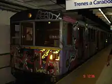![]() Formación La Brugeoise estacionada en la estación Perú de la línea A | ||
